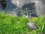 De roodwangschildpad van dichtbij.