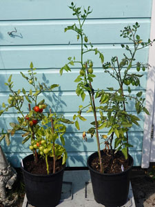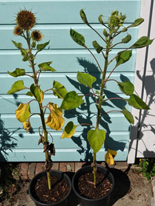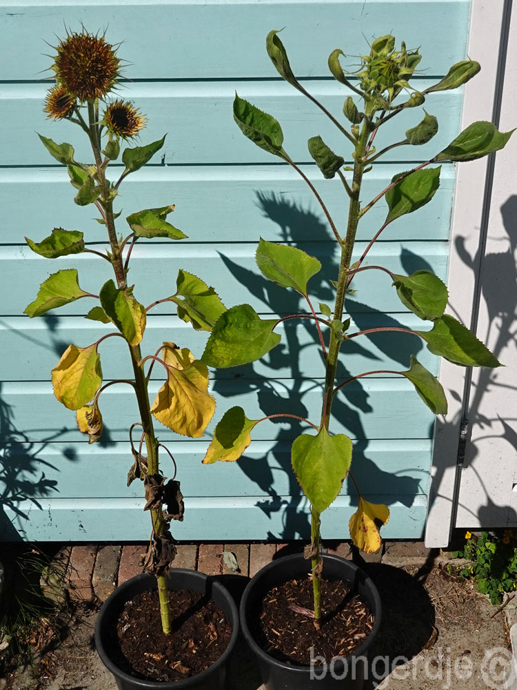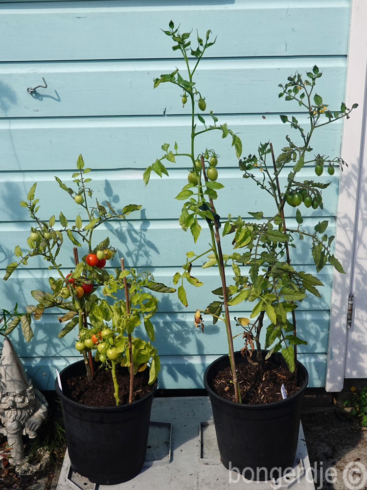 Heb een paar tomatenplanten en een paar zonnebloemen van zaailingen van dezelfde grootte in potten gedaan.
