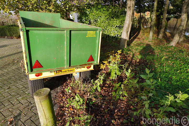 eind vorig jaar stond deze aanhangwagen hier lang geparkeerd, op de beplanting
